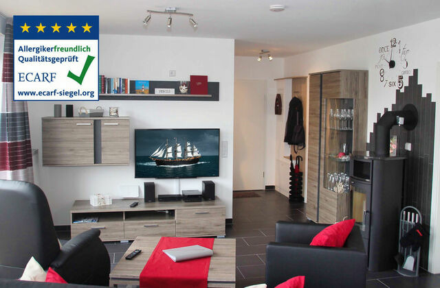 Traumhafte Ferienwohnung mit Kamin, Balkon, Regendusche und kostenfreie Sauna. Die 56 qm große Ferienwohnung ist für Allergiker und Familien mit Kindern geeignet. Kinder 0-3 Jahren sind von den Aufbettungsgebühren ausgenommen. Vom Haus führt ein Fußweg zum Strand. Ein Strandkorb am Strand steht unseren Gästen von Mai-September kostenfrei zur Verfügung.